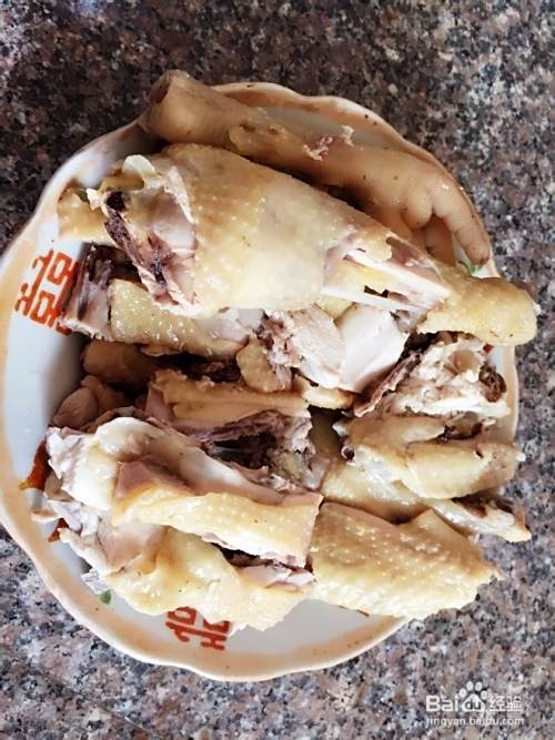 把放凉的鸡斩小块装盘里,蘸上第二步调好的蘸味料即可
