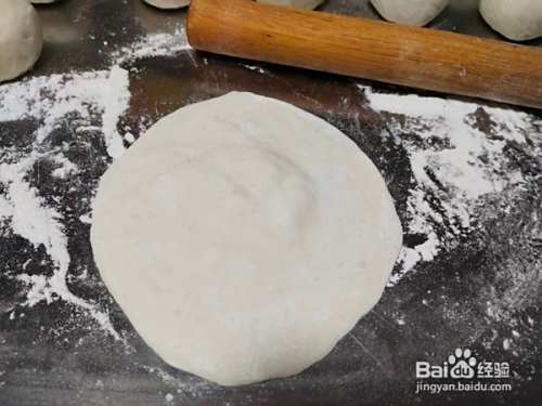 用擀面杖,擀成四周薄,中间厚的面皮;