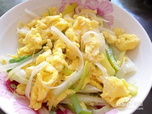 将鸡蛋打入碗中,加少许温水搅拌均匀,倒入油锅里炒,炒时往锅里滴几滴酒,这样炒出来的鸡蛋蓬松,鲜嫩可口