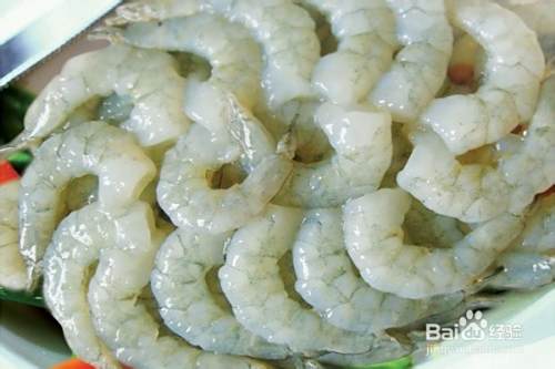 将虾仁放入碗内,每半斤虾仁加入精盐、食用碱1克,用手轻轻转一下,然后用清水浸泡,洗干净。这样炒出来的虾仁爽嫩而可口