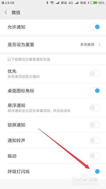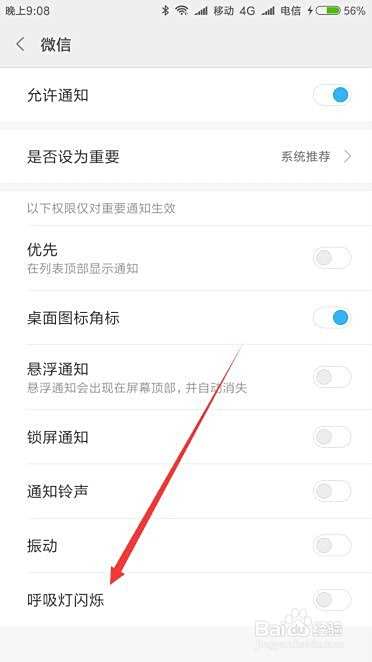 接下来再打开的页面,找到呼吸灯闪烁的设置项。