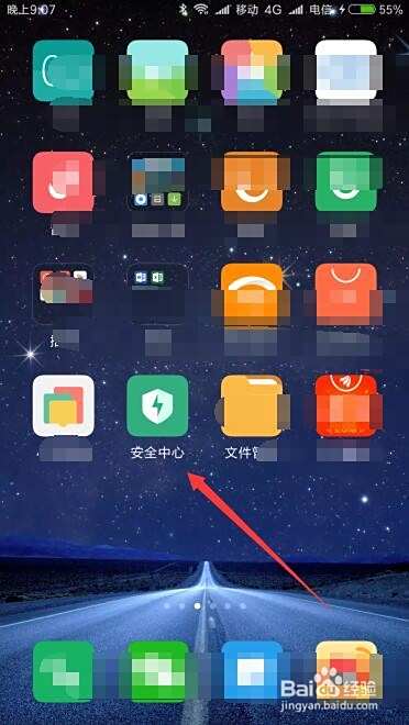 在手机屏幕上左右滑动,点击安全中心的图标。