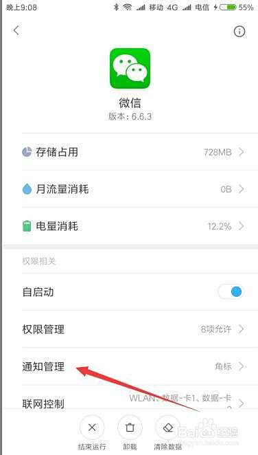 这时就会打开微信的详情页面,点击通知管理的设置项。