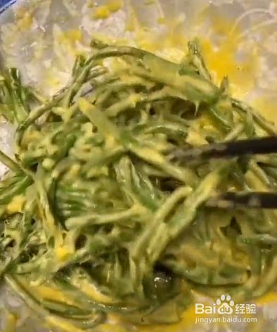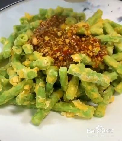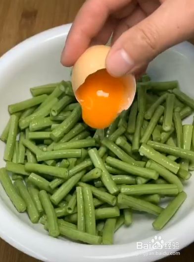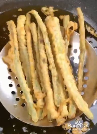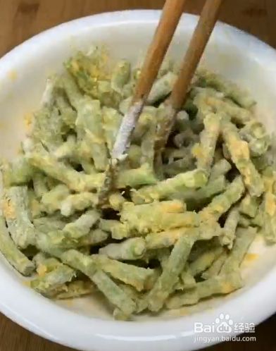 先把豆角洗净切段,然后在锅里加清水,放食盐,然后下入豆角焯水后捞出,这个时候来调制蛋液;鸡蛋2个、食盐适量、鸡精10克、淀粉20克、面粉20克,搅拌均匀。用20克淀粉在豆角里边抓拌均匀,然后淋入蛋液搅拌均匀。锅中加入食用油,油温五成热,下入豆角油炸至金黄酥脆。关火捞出,撒上辣椒粉,就做好了。
