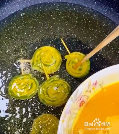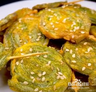 把豆角洗净下锅加清水和食盐,煮熟后捞出,然后卷起来,用烧烤专用竹签穿起来,然后裹上面粉和蛋液。锅中加入食用油,把豆角棒棒糖下锅炸熟,起锅装盘撒上芝麻就做好了。
