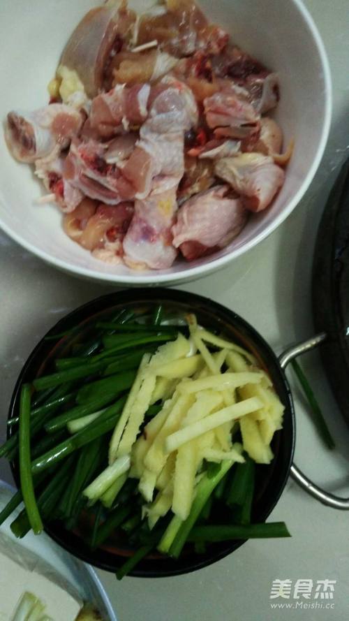鸡腿洗干净,砍好大小块就可以了,姜,葱,备好