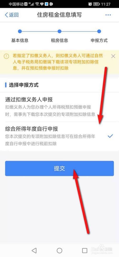 点选“通过扣缴义务人申报”或“综合所得年度自行申报”,点击“提交”即可。