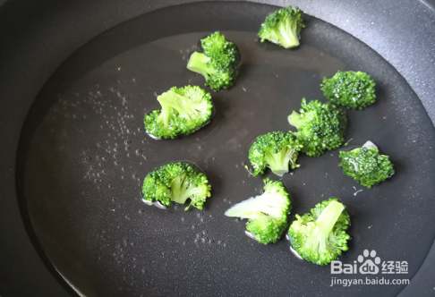锅里放入适量的清水,烧开后把西兰花小块投入锅时焯水断生,沥干水分备用,