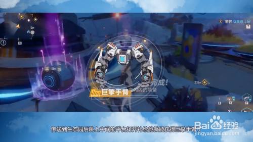 传送到生态园后跳上中间的平台打开补给舱就能获得巨擎手臂了。