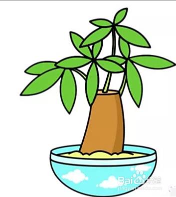 大家可以多画一些树叶来使发财树更加茂盛哦