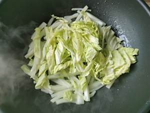 下入白菜,大火炒至白菜变软