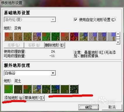 有时候你需要不同城市的地形,但是每个新建的地图都默认就那几个地形,怎么添加地形呢?高级》修改地形设置;如下图