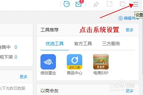 登录成功后,在页面的右上角点击倒数第一个图标像(三)这样的标志,点击系统设置。