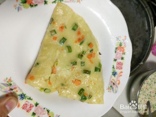 等到鸡蛋饼成了金黄色,就熟了,把鸡蛋饼拿出即可