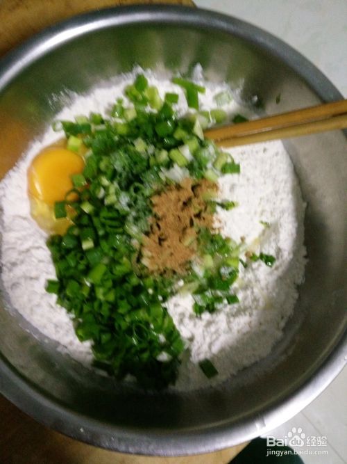 把准备好的食材,小葱切好,胡萝卜切丁,放在一个盆里,加上盐和十三香