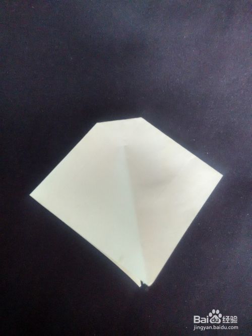 然后将正方形死边儿的那面折个小三角形。然后全部打开。按照中间正方形的印,将正方形推成两个三角形。这样正方形上面就没有尖了。