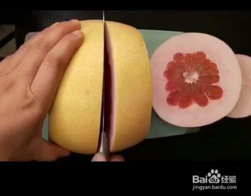 第一步,把柚子放平,用菜刀横切。切切开几段