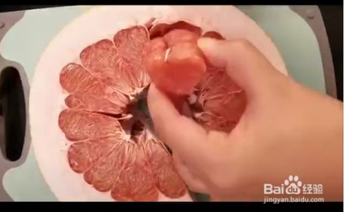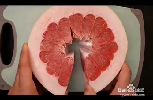 掰开后你就可以轻易的那出一个柚子肉了,方便快捷,然后不会有白丝影响食欲