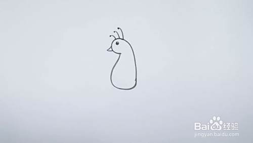 首先画一个像胳膊的形状,作为孔雀的头和身体。