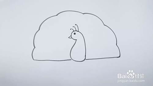 接下来,画开屏的尾巴。这里如果你有半圆且有弧形的尺子,就用它画出开屏的尾巴。没有的话就画不规则弧度的尾巴吧。