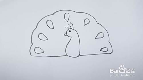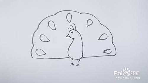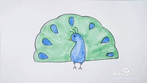 最后就是给孔雀涂上漂亮的颜色就可以了。给孔雀涂什么颜色,这个可以根据自己喜欢,上出彩色的尾巴,也可以和图中一样,选用单一的两种颜色。