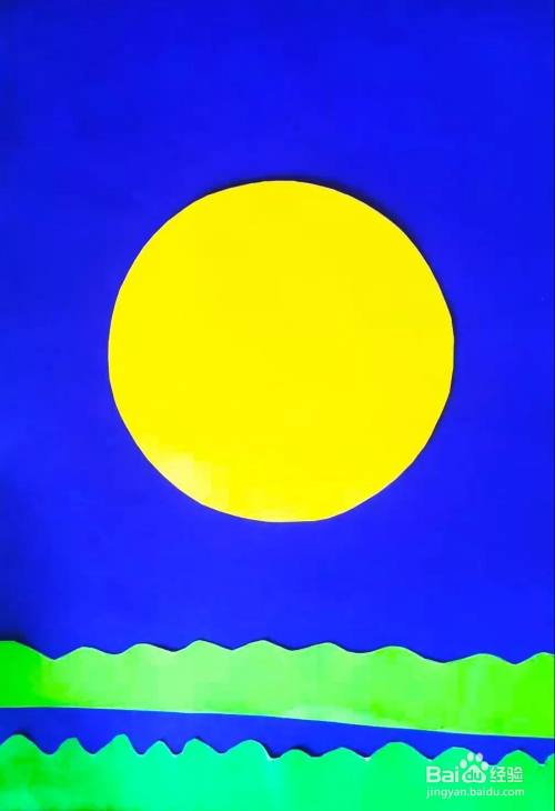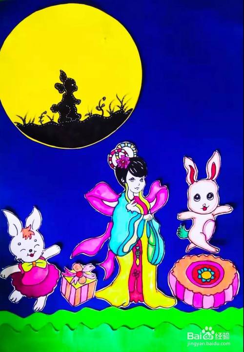 画好月亮上的兔子,将上好颜色的图案裁剪下来,如下图进行粘贴。