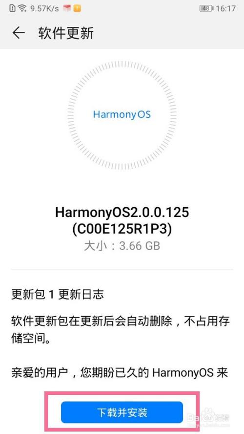 3、最后在软件更新的界面选择下载并安装就可以了。