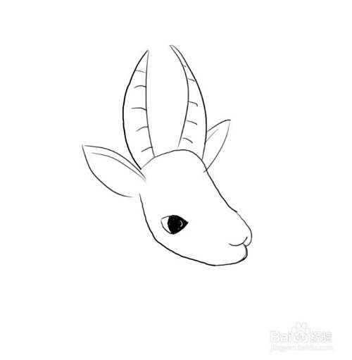 接着画上羚羊的两只耳朵和羚羊长长的脸。