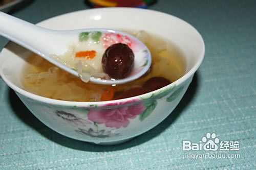 银耳红枣汤,这个汤具有补肾、润肠、益胃、补气、和血、强心、壮身、补脑、提神、美容、嫩肤、延年益寿的功能。用于治肺热咳嗽、肺燥干咳、妇女月经不调、胃炎、大便秘结,内分泌失调,对于皮肤暗淡无光的朋友长期服用可以润肤,并有祛除脸部黄褐斑、雀斑的功效