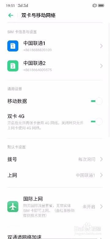 【OPPO】操作步骤:设置→双卡与移动网络→点击SIM卡信息与设置(中国联通)→VoLTE高清通话