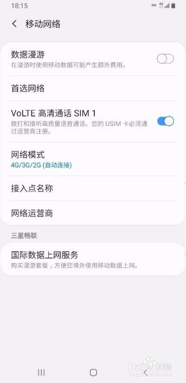 【三星】设置→连接→移动网络→VoLTE高清通话SIM1