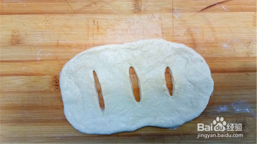 将醒发好的面团取出来,放在砧板上揉面,赶走空气。