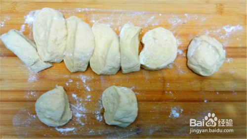 面团揉成长条,然后分成大小相等的面剂子,揉成面团。