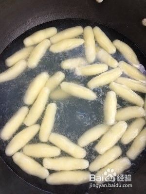 全部都做好后,大锅烧开水后依次将土豆条慢慢放入开水中,煮至土豆条全部浮起来就是熟了(如果喜欢吃甜的话这一步加入糖就可食用了)