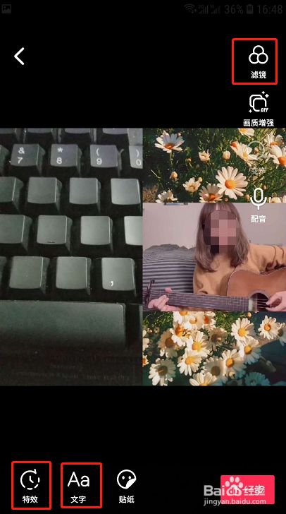 4.录制完原始视频后,可以对视频进行美化,点击右上角的“滤镜”添加滤镜。