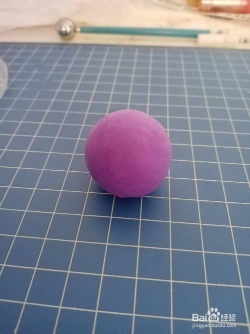 首先用紫色的粘土搓一个圆球,作为喵星人的身体