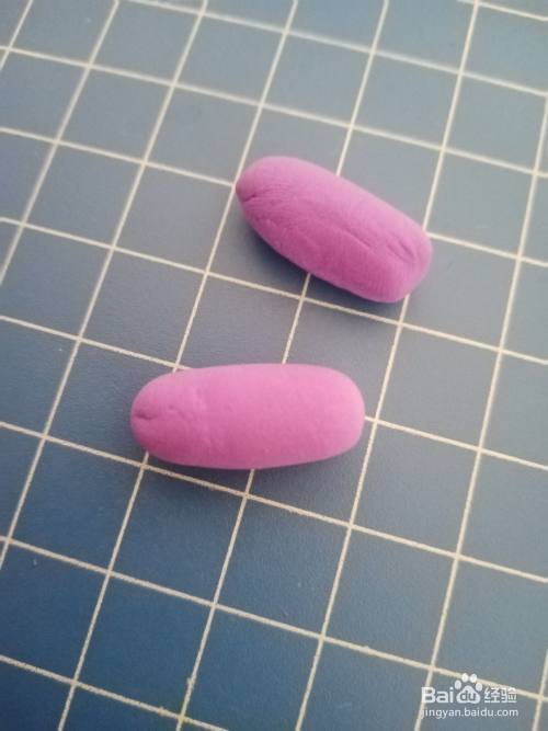 浅紫色粘土搓一个圆球后压扁成一个圆片,用来做喵星人的浅色的肚皮