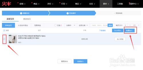 或者,批量勾选参加活动的宝贝后,点击页面右上角【批量加入】按钮,添加宝贝到图标活动中。