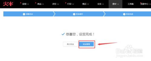 当页面提示【设置完成】以后,可以在页面点击【投放管理】按钮,跳转到图标投放页面,查看已经创建的图片活动,并对活动进行调整。