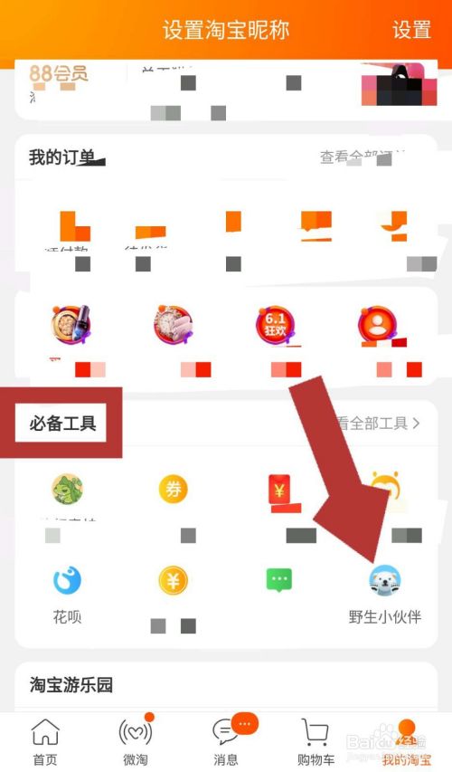 进入我的淘宝页面后,找到“必备工具”板块,点击“野生小伙伴”,进入野生小伙伴页面。