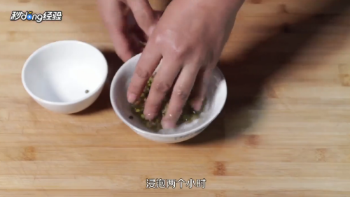 倒入洗净的绿豆,放入两碗清水,浸泡两个小时。