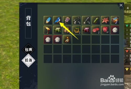 获得物品后,点击打开背包。