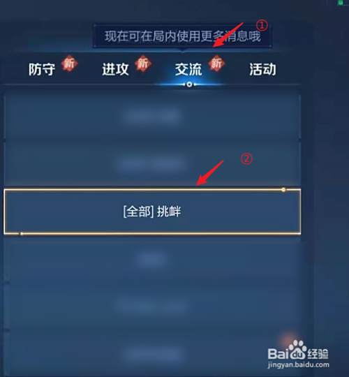 在交流一栏中找到并点击“挑衅”。