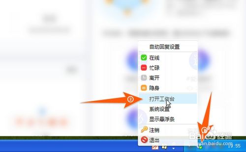 先说在千牛里从哪里可以打开自己的店铺吧,右击桌面右下角的千牛图标,在弹出来的框中点击打开工作台。
