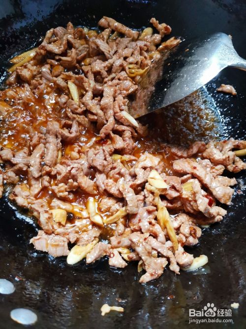 再先锅里多加点油加热至香味,把肉丝倒进油锅里炒熟,再把肉丝盛出来,留油在锅里,
