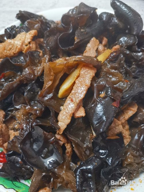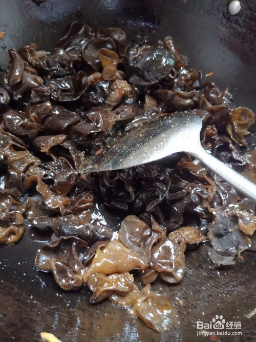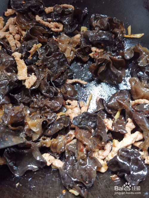 再把木耳倒进肉油里一起炒,加上少许盐,大概两分钟就可以加入炒好的肉丝,翻炒几遍就可以了,