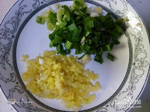 青蒜苗切成比较小的段,蒜头部分要拍一下切碎,生姜、葱白切成末。