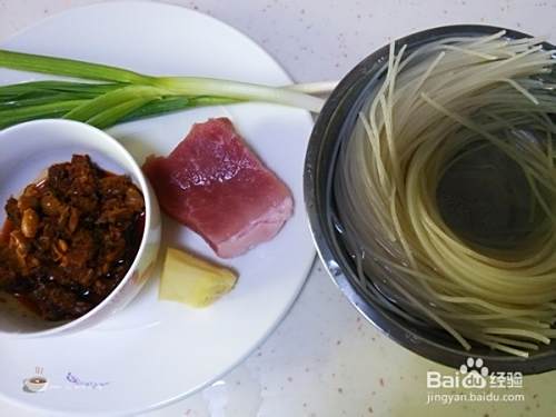 准备好原材料,米粉提前用凉水泡发好。