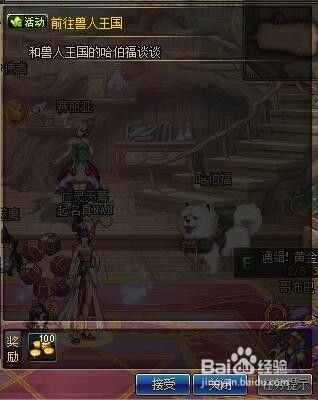 之后在接取第下一个任务“前往兽人王国”(鼠标点击哈伯福选择前往兽人王国即可传送至兽人王国)
