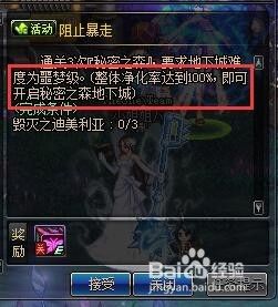从阻止暴走这个任务我们可以看到,整体净化率达到100%的时候,秘密之森这个地图就会开启!